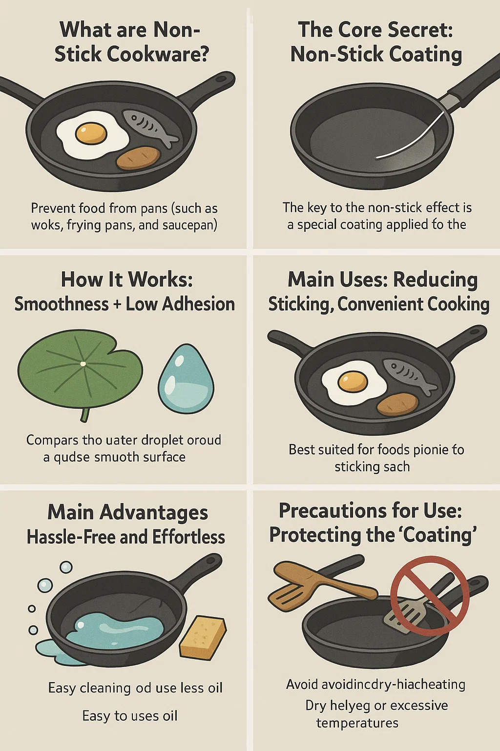 Yksinkertaisesti sanottuna ne ovat kattiloita ja pannuja (kuten wokit, paistinpannut ja kattilat), joiden sisäpinta on erityisesti käsitelty estämään ruokaa tarttumasta pohjaan kypsennyksen aikana. Kun paistat sekoitellen, paistat kananmunia tai paistat kalaa, ruoka ei tartu helposti pannun pohjaan.